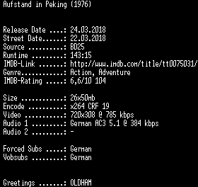 | FiLENAME: | Aufstand.in.Peking.German.REMASTERED.1976.AC3.BDRip.x264-SPiCY.mkv |