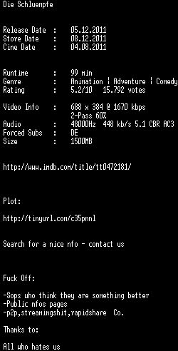 | FiLENAME: | Die.Schluempfe.German.AC3.DVDRip.XviD-DiSTRiCT.avi |
