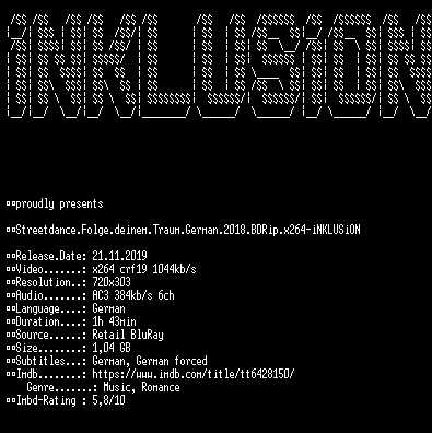 | FiLENAME: | Streetdance.Folge.deinem.Traum.German.2018.BDRip.x264-iNKLUSiON.mkv |