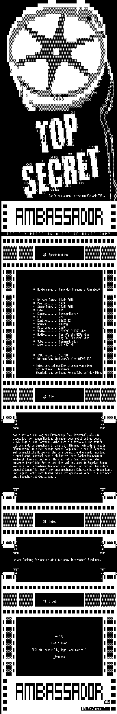 | FiLENAME: | Camp.des.Grauens.3.UNRATED.GERMAN.1989.BDRIP.X264-AMBASSADOR.mkv |