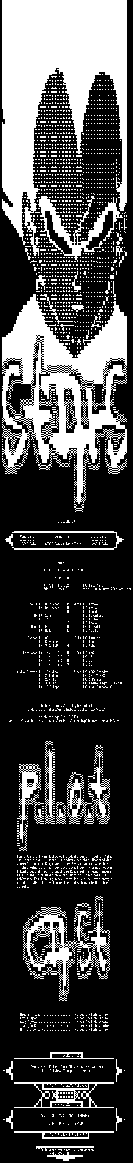 | FiLENAME: | Summer.Wars.German.DL.DTS.720p.BluRay.x264-STARS.mkv |