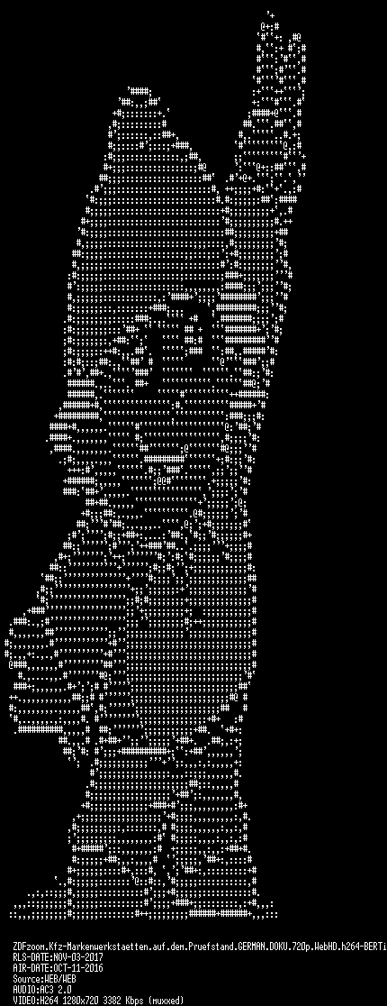 | FiLENAME: | ZDFzoom.Kfz-Markenwerkstaetten.auf.dem.Pruefstand.GERMAN.DOKU.720p.WebHD.h264-BERTi.mkv |