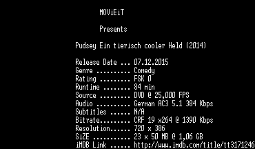 | FiLENAME: | Pudsey.Ein.tierisch.cooler.Held.German.2014.AC3.DVDRip.x264-MOViEiT.mkv |