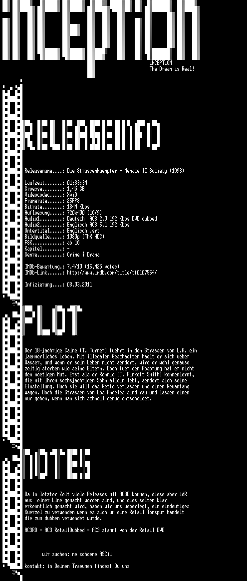 | FiLENAME: | Menace.II.Society.1993.Directors.Cut.German.AC3RD.DL.HDRip.XviD-iNCEPTiON.avi |