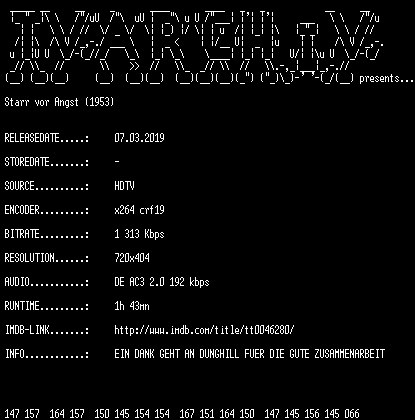 | FiLENAME: | Starr.vor.Angst.1953.German.HDTVRip.x264-TVARCHIV.mkv |