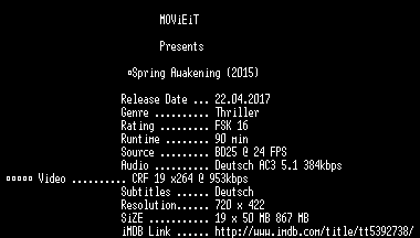 | FiLENAME: | Spring.Awakening.German.2015.AC3.BDRip.x264-MOViEiT.mkv |