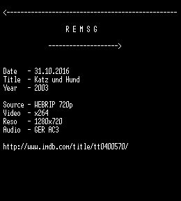 | FiLENAME: | Katz.und.Hund.GERMAN.2003.720p.WEBHD.x264-REMSG.mkv |