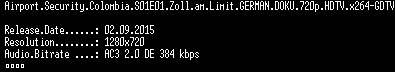 | FiLENAME: | Airport.Security.Colombia.S01E01.Zoll.am.Limit.GERMAN.DOKU.720p.HDTV.x264-GDTV.mkv |