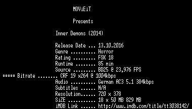 | FiLENAME: | Inner.Demons.German.2014.AC3.BDRip.x264-MOViEiT.mkv |