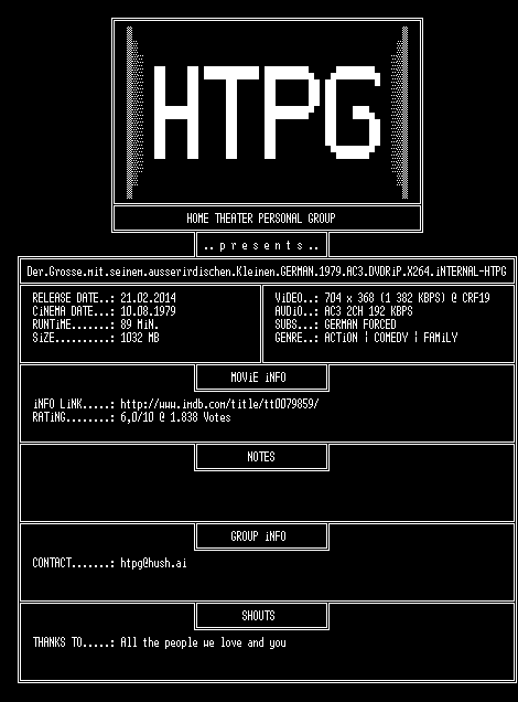 | FiLENAME: | Der.Grosse.mit.seinem.ausserirdischen.Kleinen.GERMAN.1979.AC3.DVDRiP.X264.iNTERNAL-HTPG.mkv |