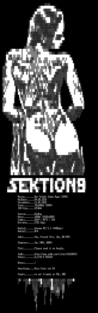 | FiLENAME: | Der.Soldat.James.Ryan.1998.German.1080p.BD9.x264-SEKTiON9.mkv |