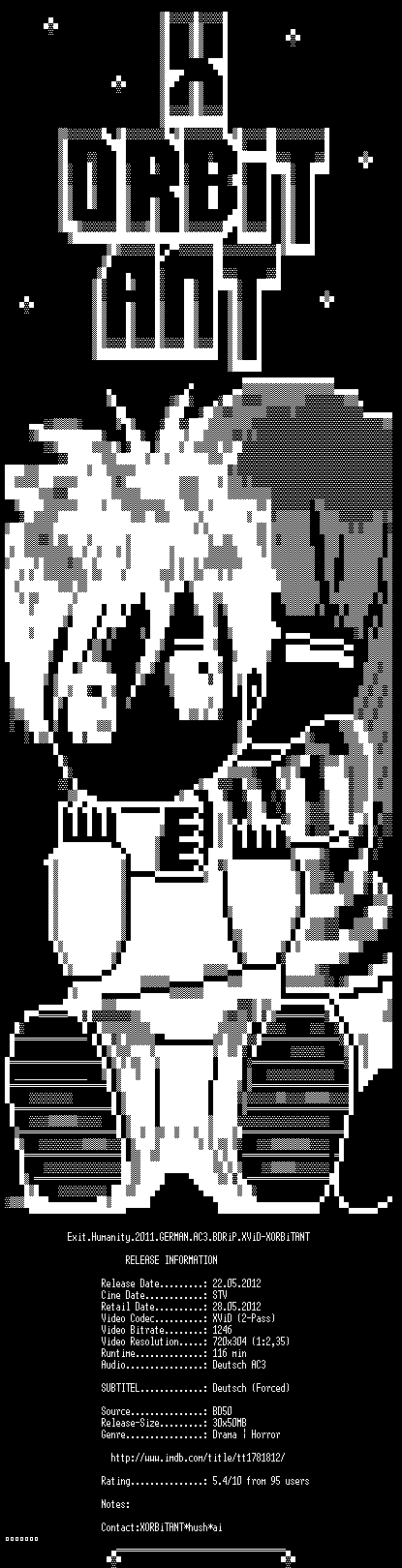 | FiLENAME: | Exit.Humanity.2011.GERMAN.AC3.BDRiP.XViD-XORBiTANT.avi |