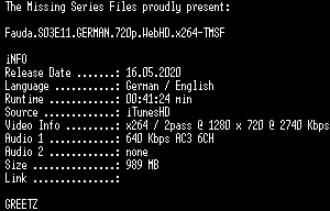 | FiLENAME: | Fauda.S03E11.GERMAN.720p.WebHD.x264-TMSF.mkv |