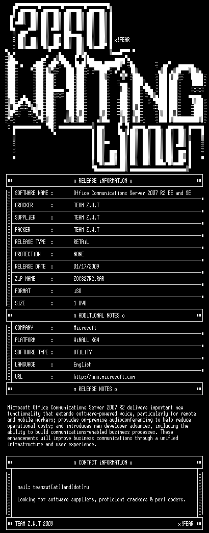 | FiLENAME: | Microsoft Office Communications Server 2007 R2 Enterprise and Standard Editions x64-ZWTiSO.iso |