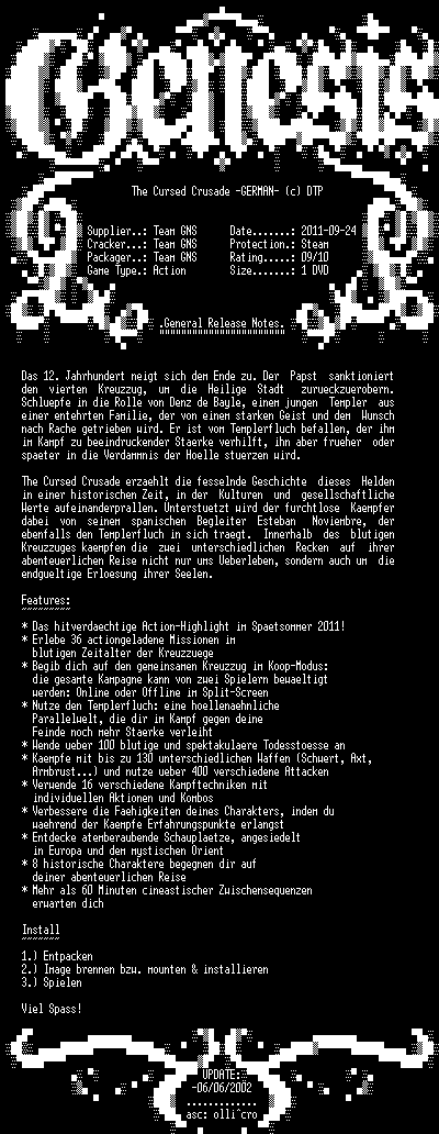 | FiLENAME: | The.Cursed.Crusade.GERMAN-GENESIS.iso |