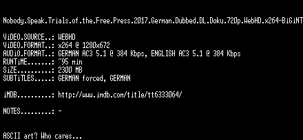 | FiLENAME: | Nobody.Speak.Trials.of.the.Free.Press.2017.German.Dubbed.DL.Doku.720p.WebHD.x264-BiGiNT.mkv |
