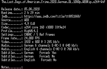 | FiLENAME: | The.Last.Days.of.American.Crime.2020.German.DL.1080p.WEBRip.x264-WvF.mkv |