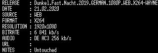| FiLENAME: | Dunkel.Fast.Nacht.2019.GERMAN.1080P.WEB.X264-WAYNE.mkv |