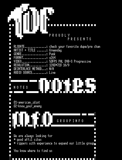 | FiLENAME: | Greenday-Live_At_Rock_Werchter-HDTV-720p-x264-2010-TDF.rar |
