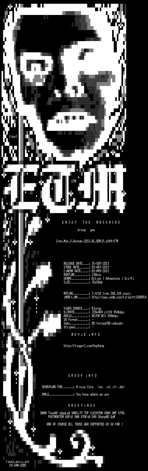 | FiLENAME: | Iron.Man.3.German.2013.DL.BDRiP.x264-ETM.mkv |