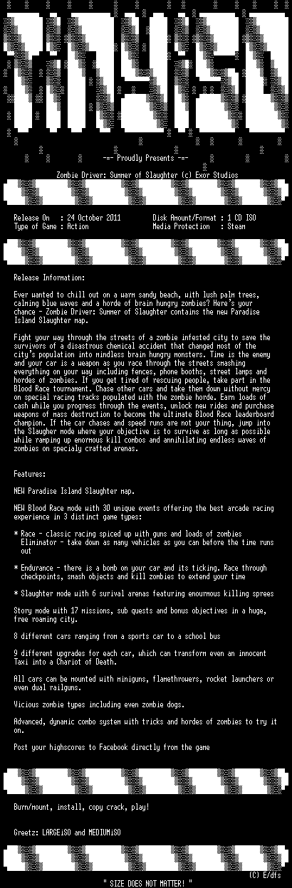 | FiLENAME: | Zombie.Driver.Summer.of.Slaughter-TiNYiSO.iso |