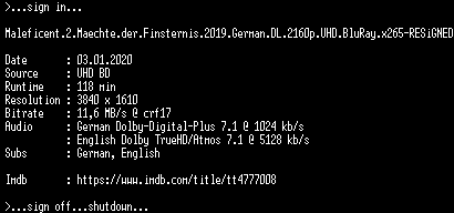 | FiLENAME: | Maleficent.2.Maechte.der.Finsternis.2019.German.DL.2160p.UHD.BluRay.x265-RESiGNED.mkv |
