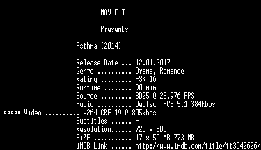 | FiLENAME: | Asthma.German.2014.AC3.BDRip.x264-MOViEiT.mkv |