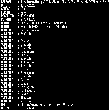 | FiLENAME: | The.Wrong.Missy.2020.GERMAN.DL.1080P.WEB.X264.INTERNAL-WAYNE.mkv |