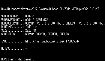 | FiLENAME: | Die.Weihnachtskarte.2017.German.Dubbed.DL.720p.WEBRip.x264-BiGiNT.mkv |