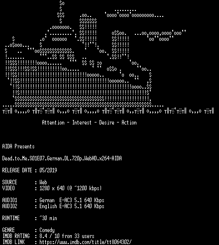 | FiLENAME: | Dead.to.Me.S01E07.German.DL.720p.WebHD.x264-AIDA.mkv |