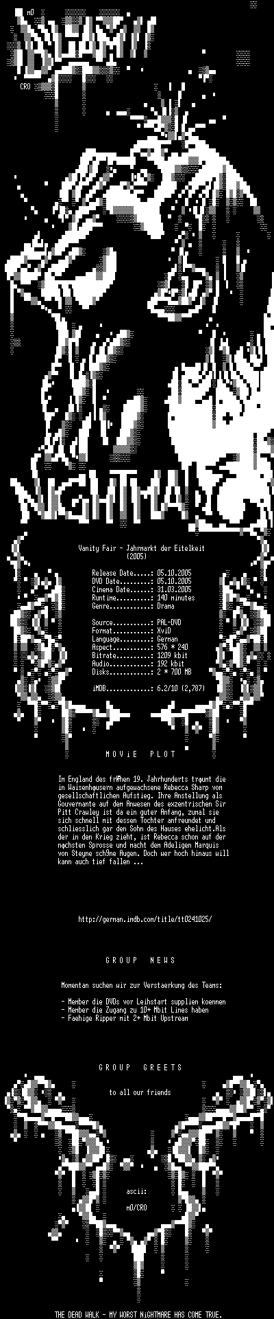 | FiLENAME: | Vanity.Fair.German.DVDRiP.XviD-NiGHTMARE.CD2.avi |