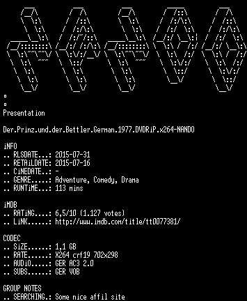 | FiLENAME: | Der.Prinz.und.der.Bettler.German.1977.DVDRiP.x264-NANDO.mkv |