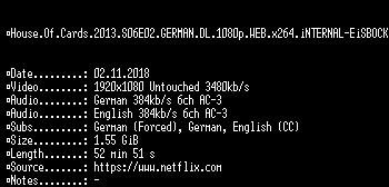 | FiLENAME: | House.Of.Cards.2013.S06E02.GERMAN.DL.1080p.WEB.x264.iNTERNAL-EiSBOCK.mkv |