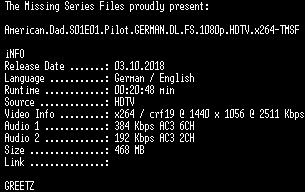 | FiLENAME: | American.Dad.S01E01.Pilot.GERMAN.DL.FS.1080p.HDTV.x264-TMSF.mkv |
