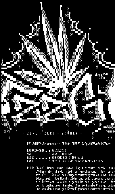 | FiLENAME: | FBI.S01E09.Zeugenschutz.GERMAN.DUBBED.720p.HDTV.x264-ZZGtv.mkv |
