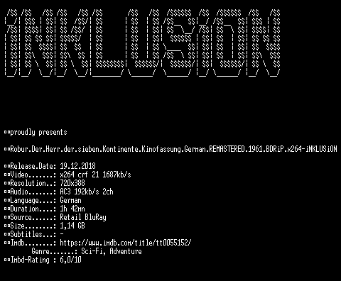 | FiLENAME: | Robur.Der.Herr.der.sieben.Kontinente.Kinofassung.German.REMASTERED.1961.BDRiP.x264-iNKLUSiON.mkv |
