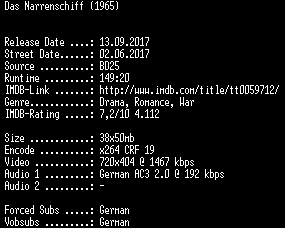 | FiLENAME: | Das.Narrenschiff.German.REMASTERED.1965.AC3.BDRip.x264-SPiCY.mkv |