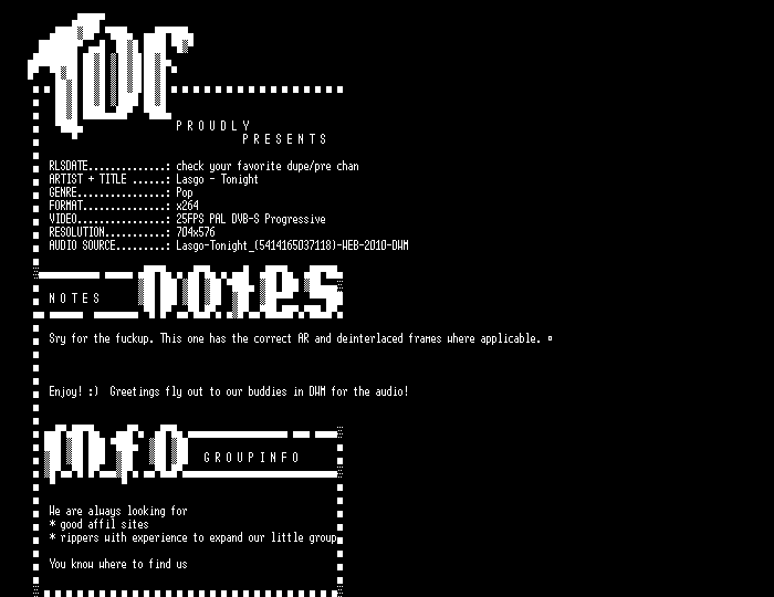 | FiLENAME: | Lasgo-Tonight-REPACK-x264-2010-TDF.mkv |