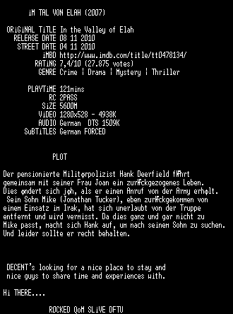 | FiLENAME: | Im Tal von Elah (2007) [GER-dts 720p BD].mkv |