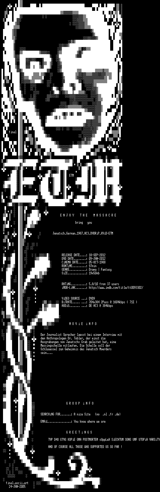 | FiLENAME: | Jenatsch.German.1987.AC3.DVDRiP.XViD-ETM.avi |