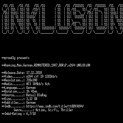 | FiLENAME: | Running.Man.German.REMASTERED.1987.BDRiP.x264-iNKLUSiON.mkv |