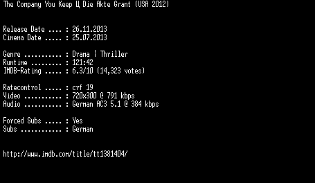 | FiLENAME: | The.Company.You.Keep.Die.Akte.Grant.German.BDRiP.x264-EXQUiSiTE.mkv |