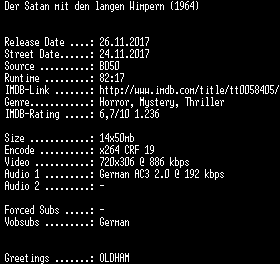| FiLENAME: | Der.Satan.mit.den.langen.Wimpern.German.REMASTERED.1964.AC3.BDRip.x264-SPiCY.mkv |