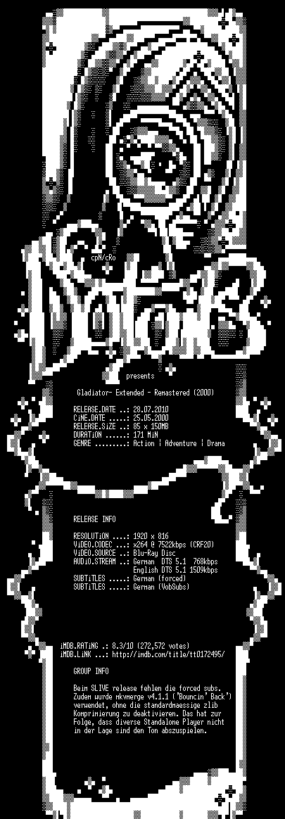 | FiLENAME: | Gladiator.2000.EXTENDED.REMASTERED.German.DL.1080p.BluRay.x264.PROPER-DETAiLS.mkv |