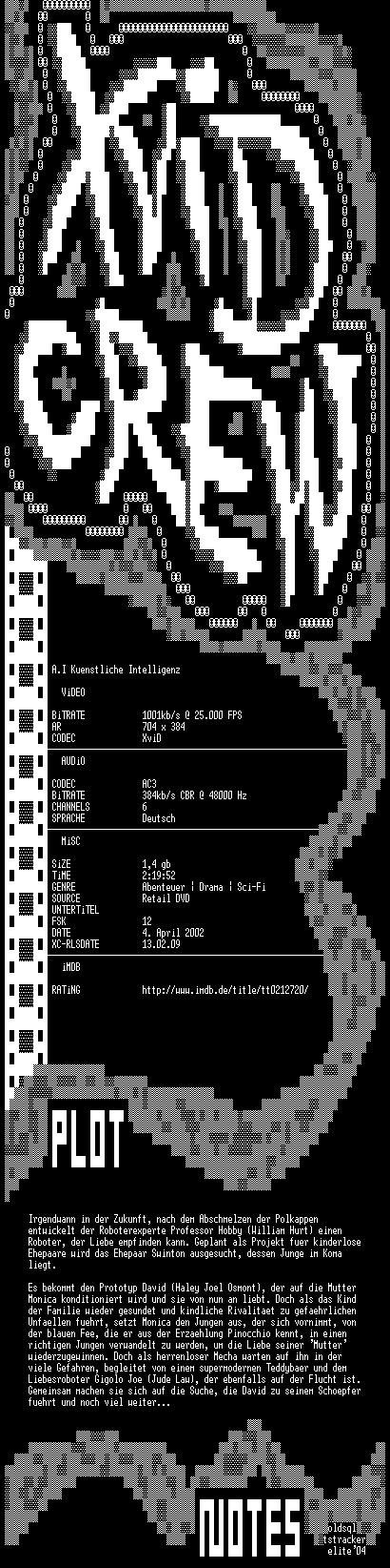 | FiLENAME: | AI - Künstliche Intelligenz (2001) [GER-AC3 WS DVD].avi |