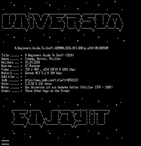 | FiLENAME: | A.Beginners.Guide.To.Snuff.GERMAN.2016.AC3.BDRip.x264-UNiVERSUM.mkv |