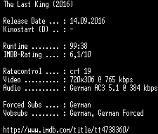 | FiLENAME: | The.Last.King.German.2016.AC3.BDRip.x264-COiNCiDENCE.mkv |