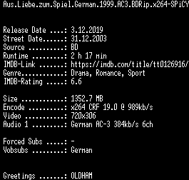 | FiLENAME: | Aus.Liebe.zum.Spiel.German.1999.AC3.BDRip.x264-SPiCY.mkv |