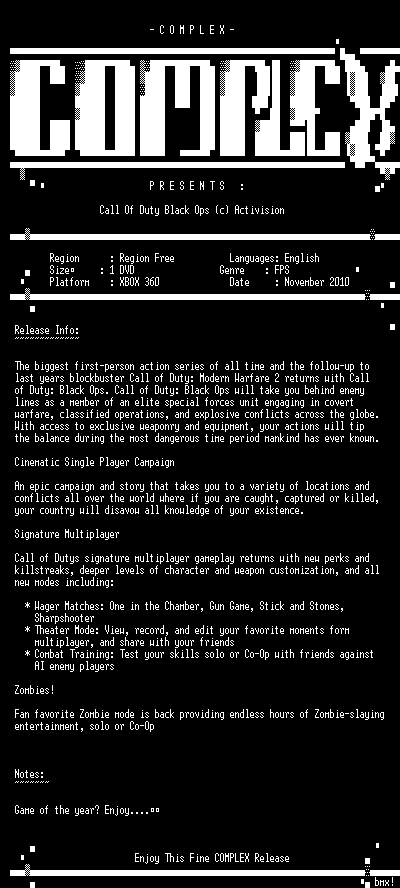 | FiLENAME: | Call.of.Duty.Black.Ops.XBOX360-COMPLEX.iso |