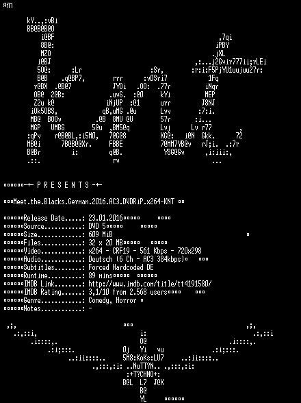 | FiLENAME: | Meet.the.Blacks.German.2016.AC3.DVDRiP.x264-KNT.mkv |